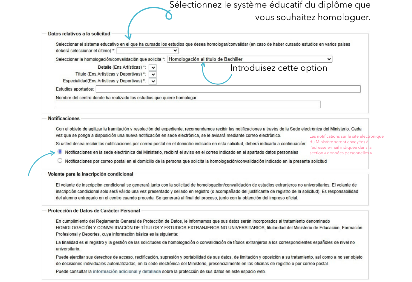 ℹ️ Pour compléter le processus d'homologation, soumettez la documentation à l'ambassade ou au consulat d'Espagne.